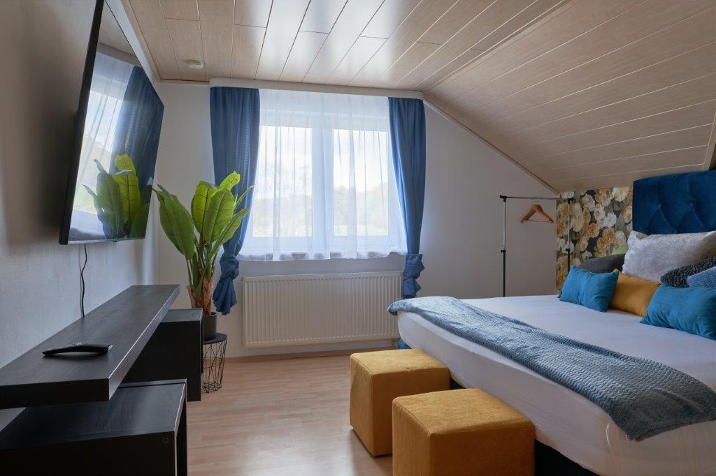 Dieses Doppelzimmer verfügt über einen Flachbild-TV.